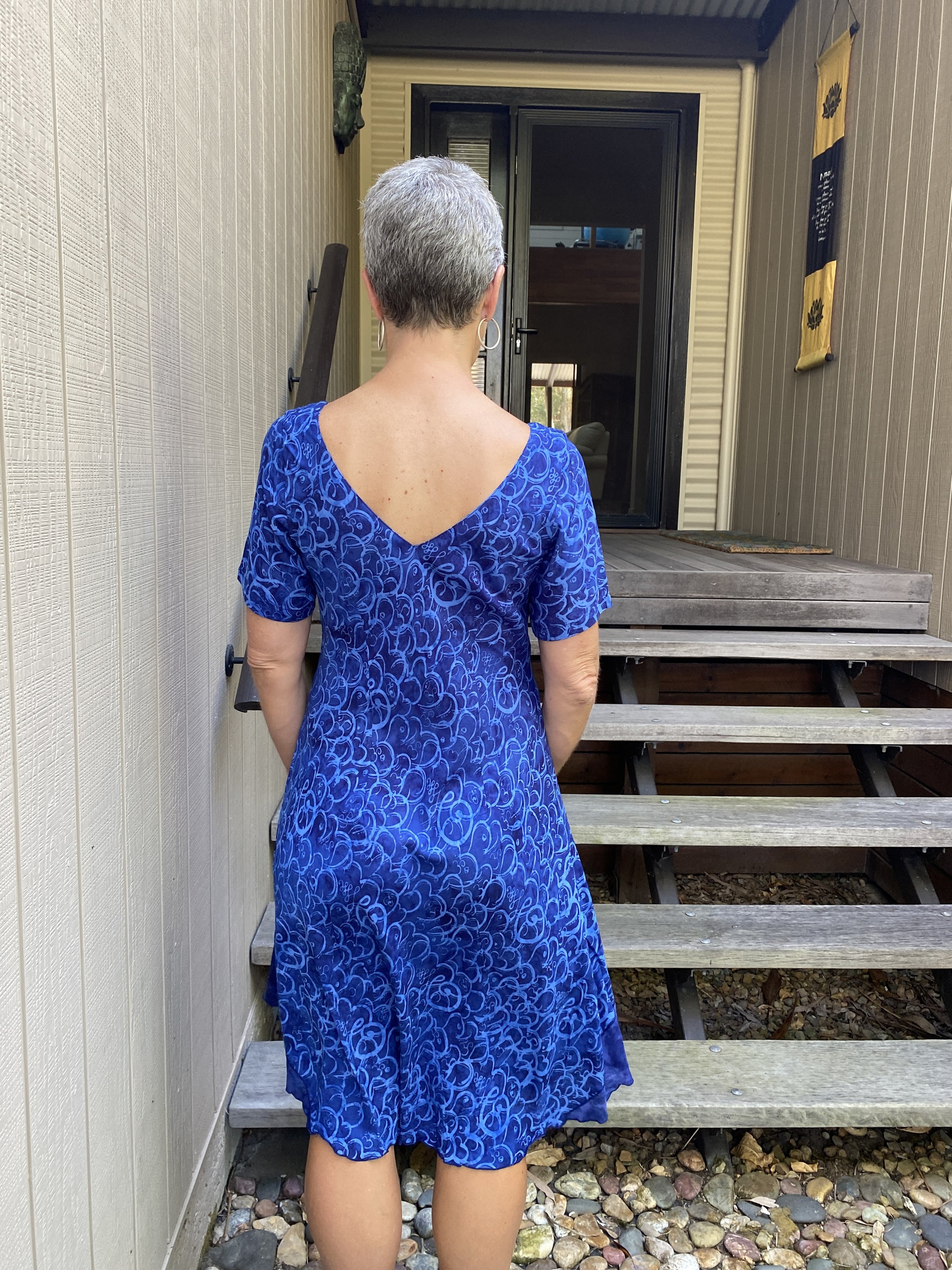 • Tailored to perfection and cut on the cross to give it stretch, this stunning  short sleeve dress is suitable for most body shapes. Flattering 'V' neck and back, flowing skirt, stretchy fit, and of course pockets.