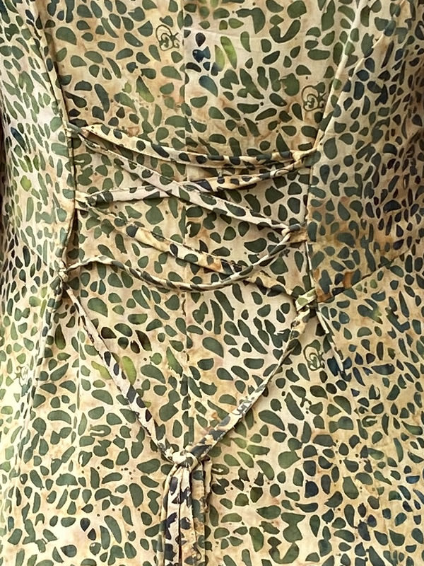 When choosing the correct size make sure the bust and hip measurement stated below will fit you. If in doubt go up to the next size. The adjustment at the back will allow you to draw it in at the waist if necessary. Can be worn loose or pulled in with the adjustable ties if preferred.